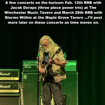 Two concerts on the horizon. February 12th, 2026 at the Winchester in Lakewood, Ohio with Jacob Deraps (power trio out of Canada) and March 28th 2026 at the Maple Grove in Maple Hts. with Storms Within (band from Erie PA)